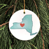 Ceramic ornaments are 3 inches in diameter and come ready to hang.