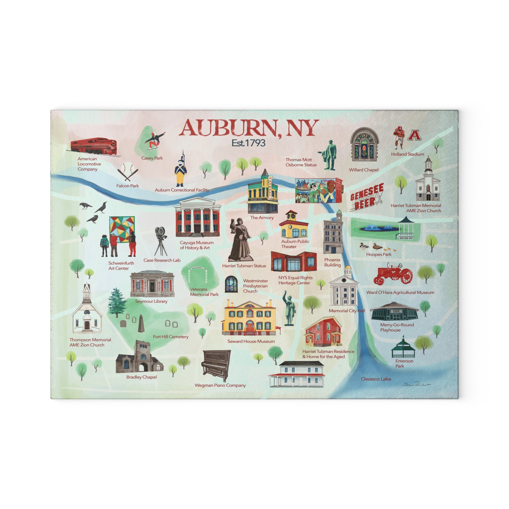 Auburn, NY Historical Landmarks Glass Cutting and Charcuterie Board