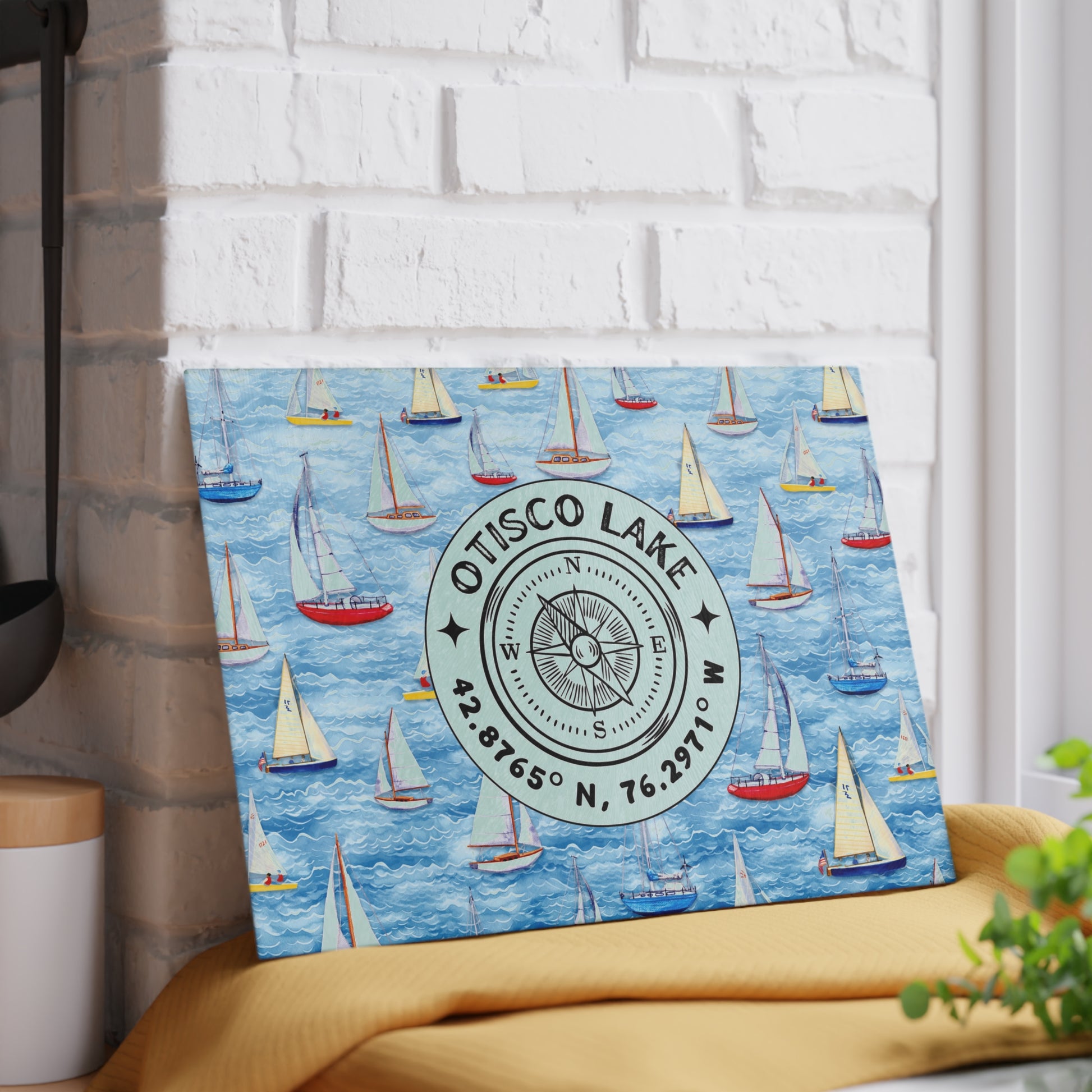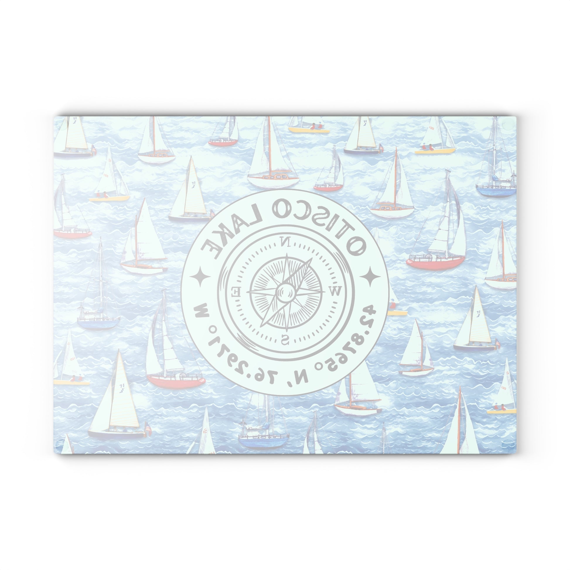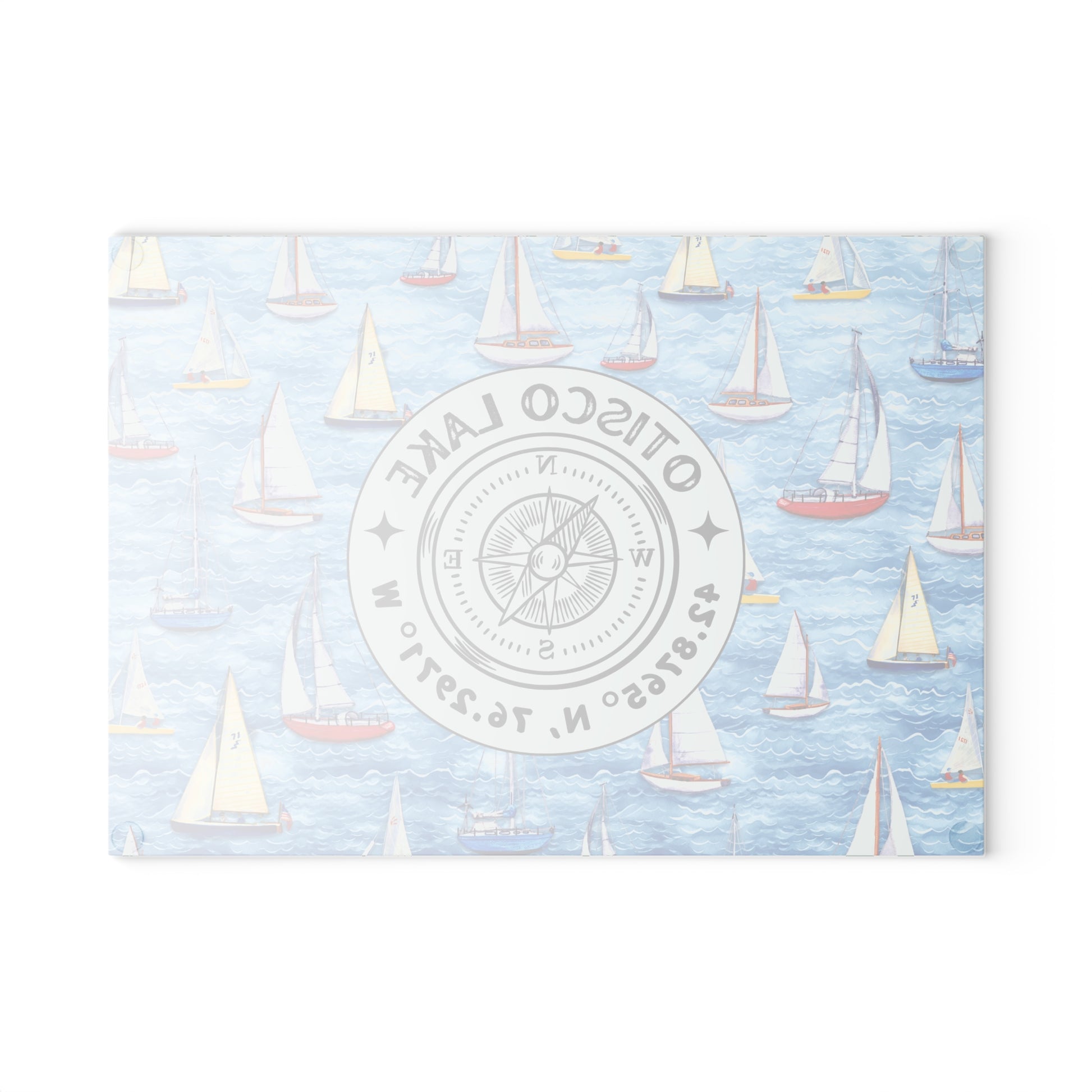 Otisco Lake Sailboats Glass Cutting and Charcuterie Board