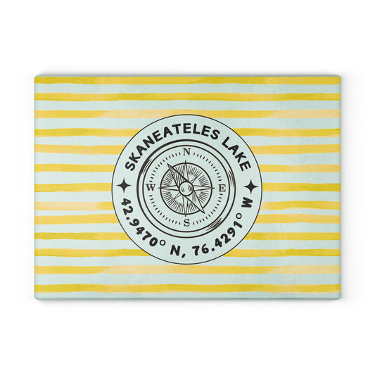 Skaneateles Yellow Cabana Stripe Glass Cutting and Charcuterie Board