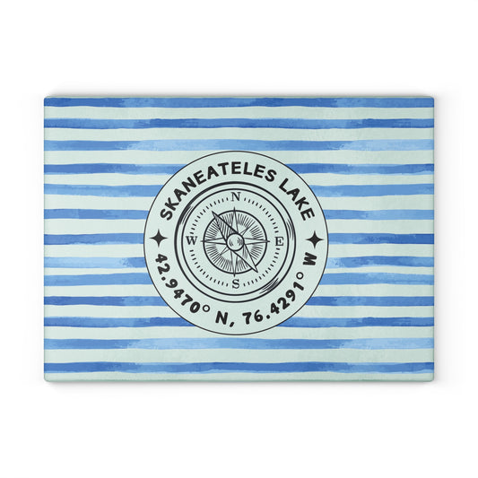Skaneateles Blue Cabana Stripe Glass Cutting and Charcuterie Board