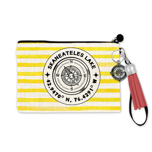 Skaneateles Lake Yellow Cabana Stripe Zipper Accessory Pouch with Tassel