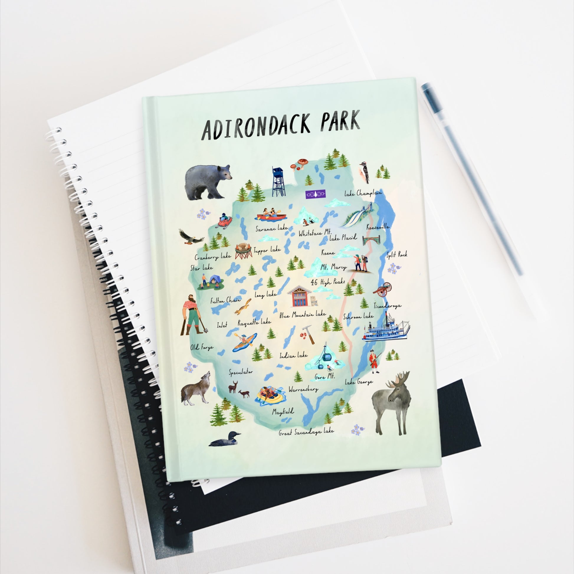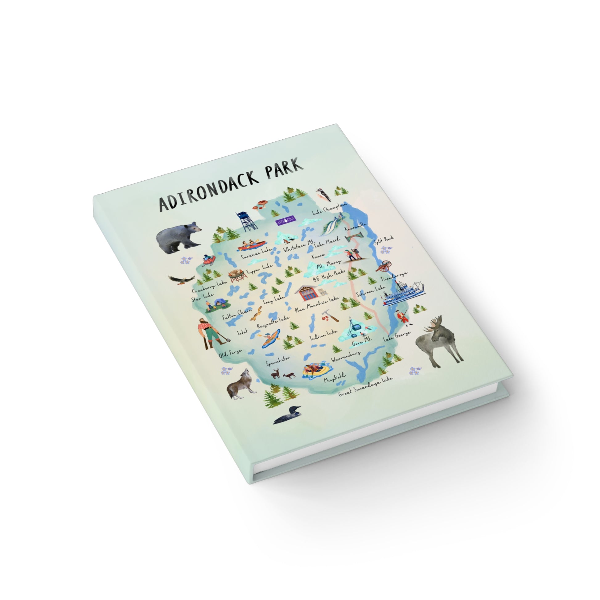 Adirondack Park Watercolor Map Illustrated Journal - Explore Nature and Adventures - Made in the USA