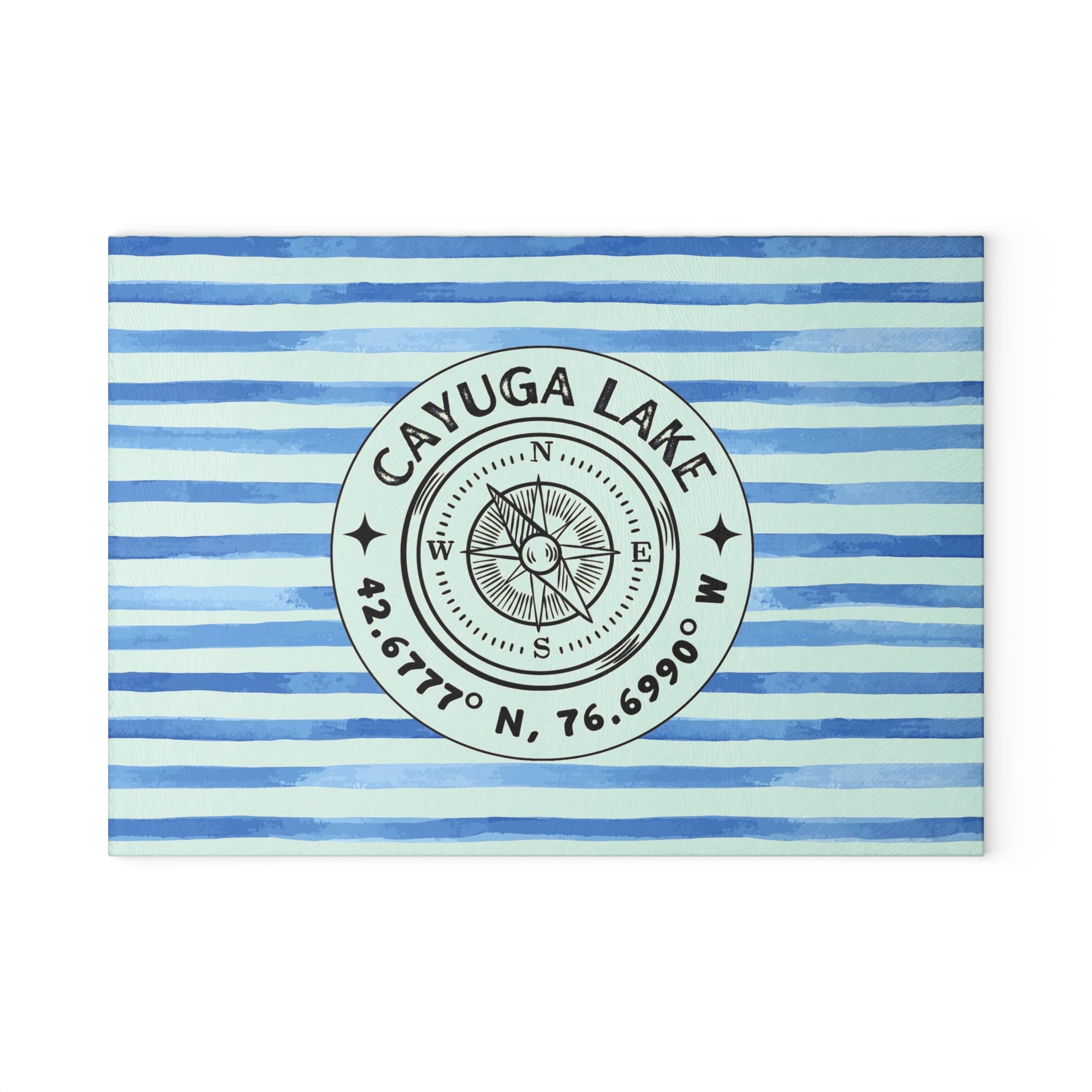 Cayuga Lake Blue Cabana Stripe Glass Charcuterie and Cutting Board