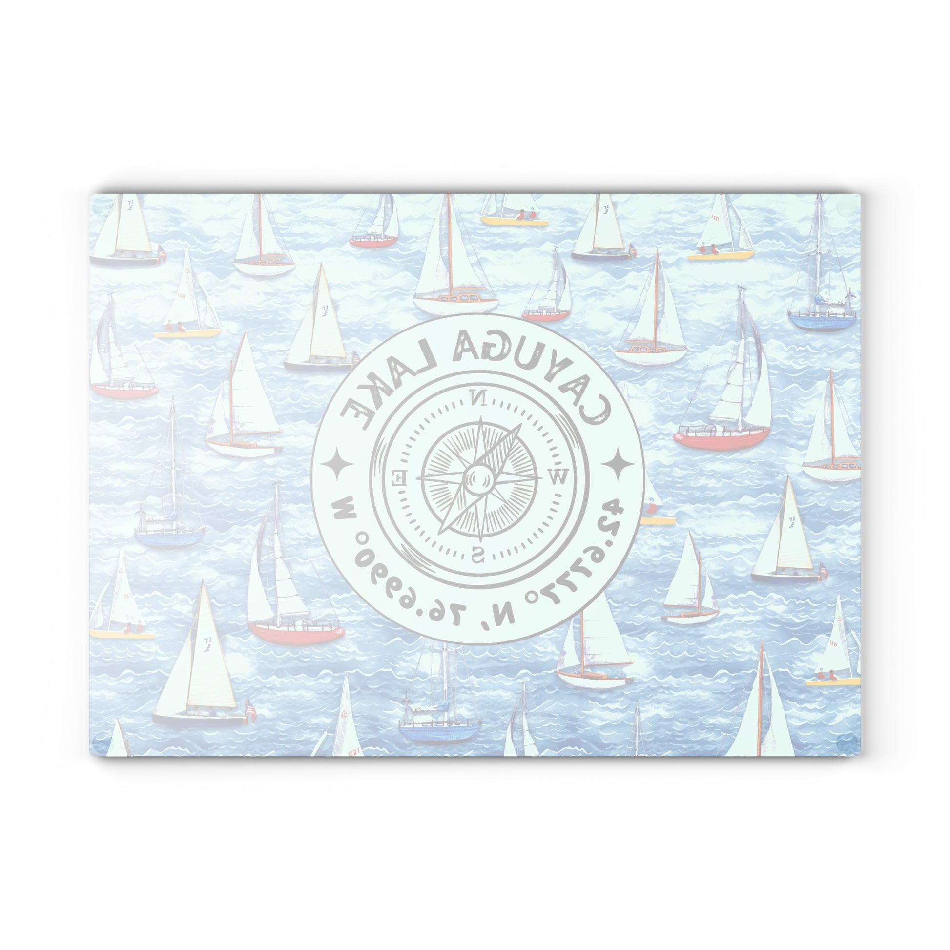 Cayuga Lake Sailboats Glass Charcuterie and Cutting Board