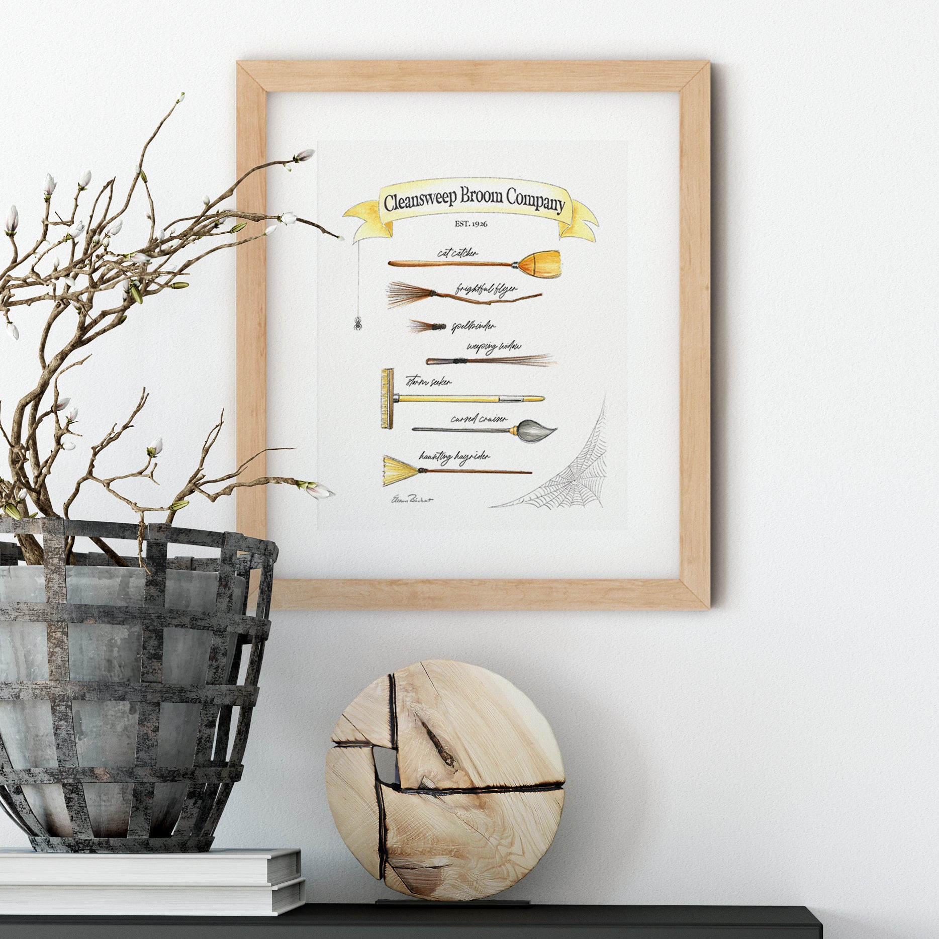 Cleansweep Broom Company Art Print, Witches' Brooms Halloween Decor
