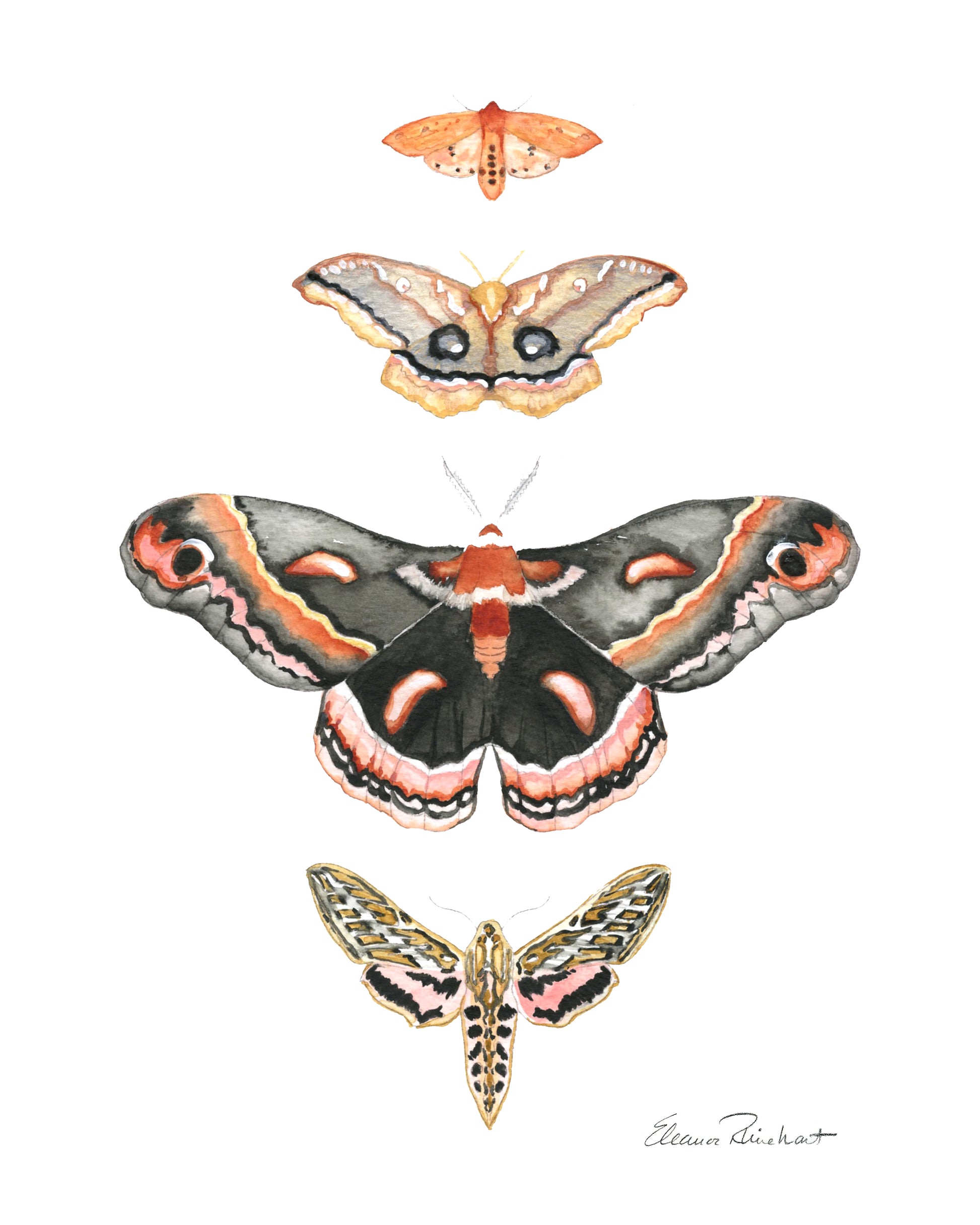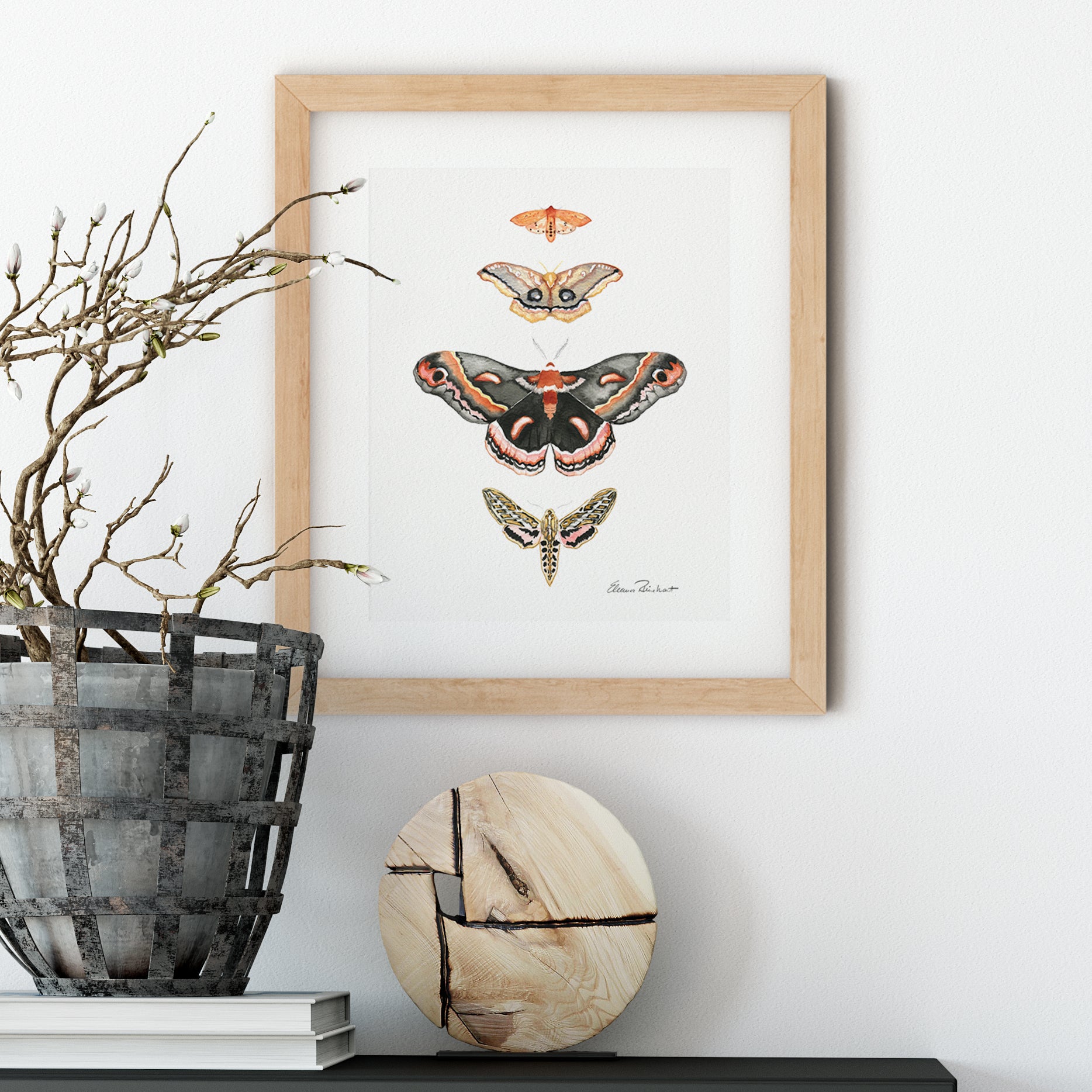 This adorable watercolor painting of four common North American moths is the perfect addition to you Halloween home decor.