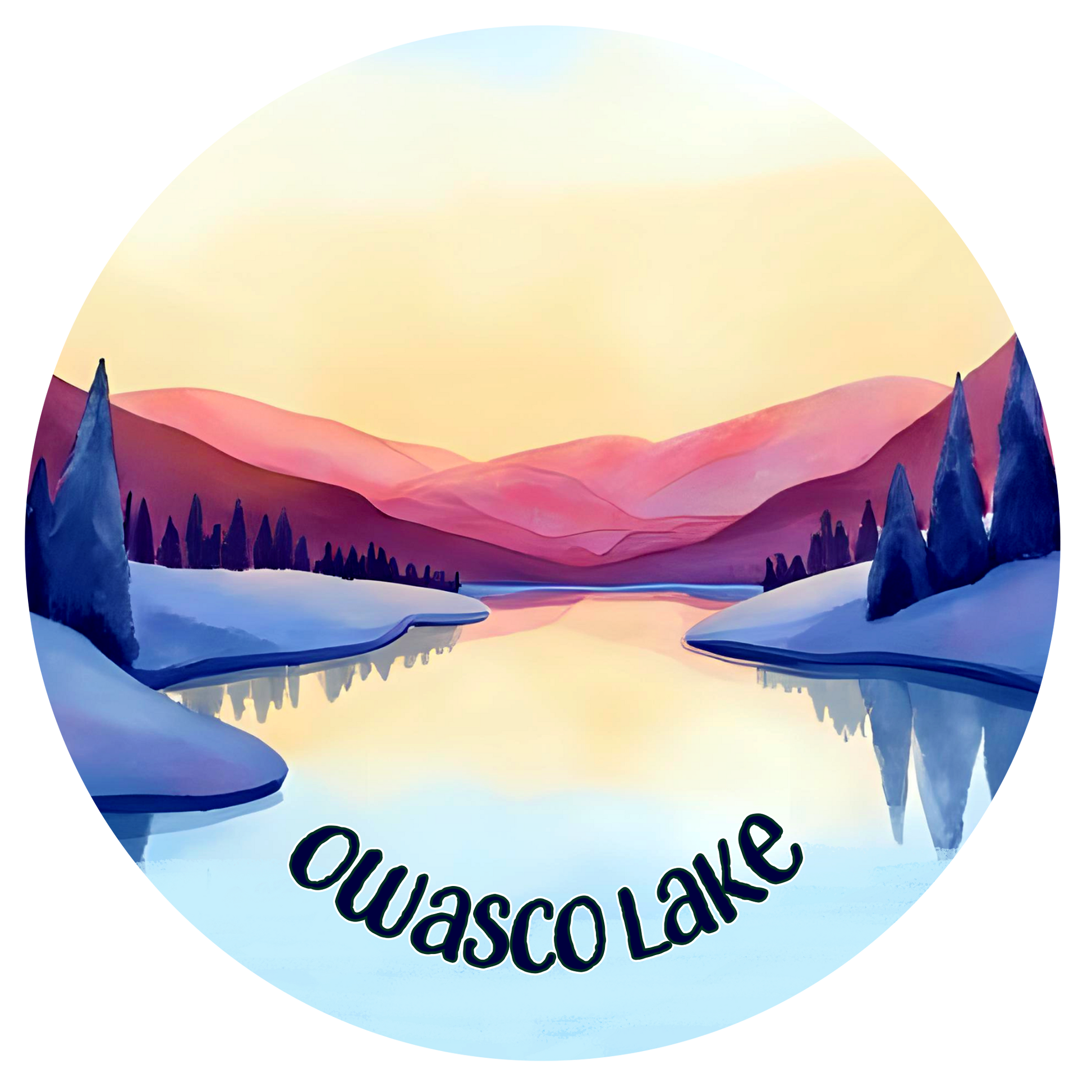 Capture the peaceful beauty of Owasco Lake with this ceramic ornament, featuring a dreamy watercolor painting of the tranquil lake on a winter morning, this 3" round ornament brings a sense of serenity and nostalgia to your holiday decor.