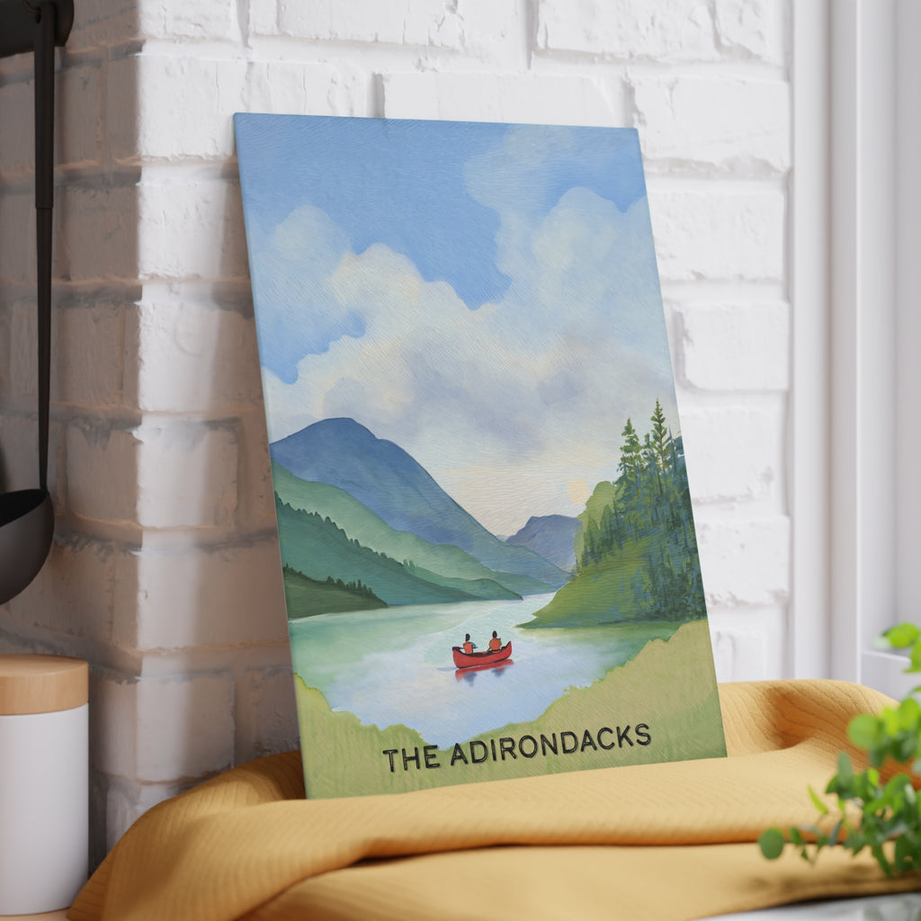 Red Canoe Adirondack Park - Glass Cutting and Charcuterie Board - Perfect for Home Chefs and Outdoor Enthusiasts - Made in the USA