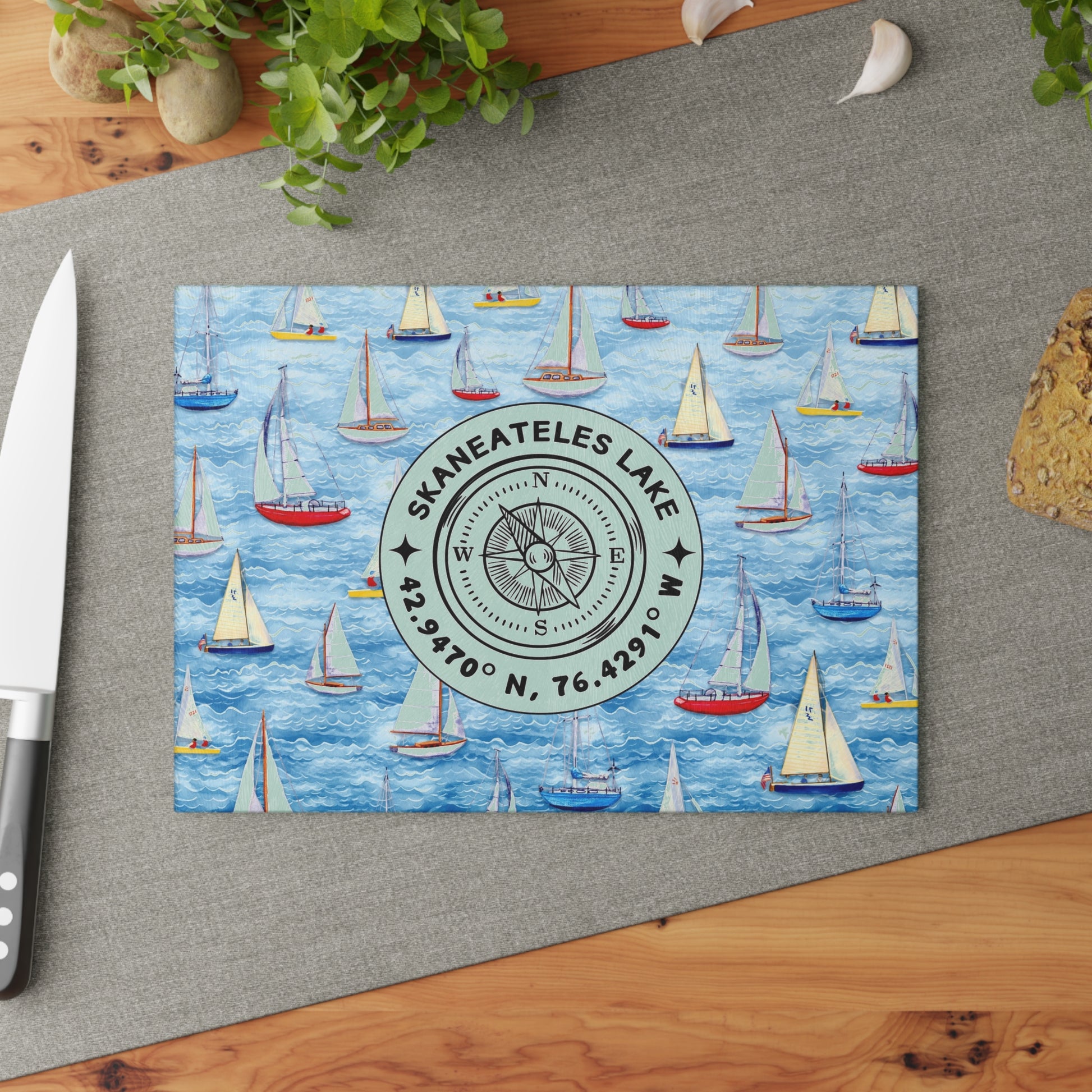 Skaneateles Sailboats Glass Cutting and Charcuterie Board