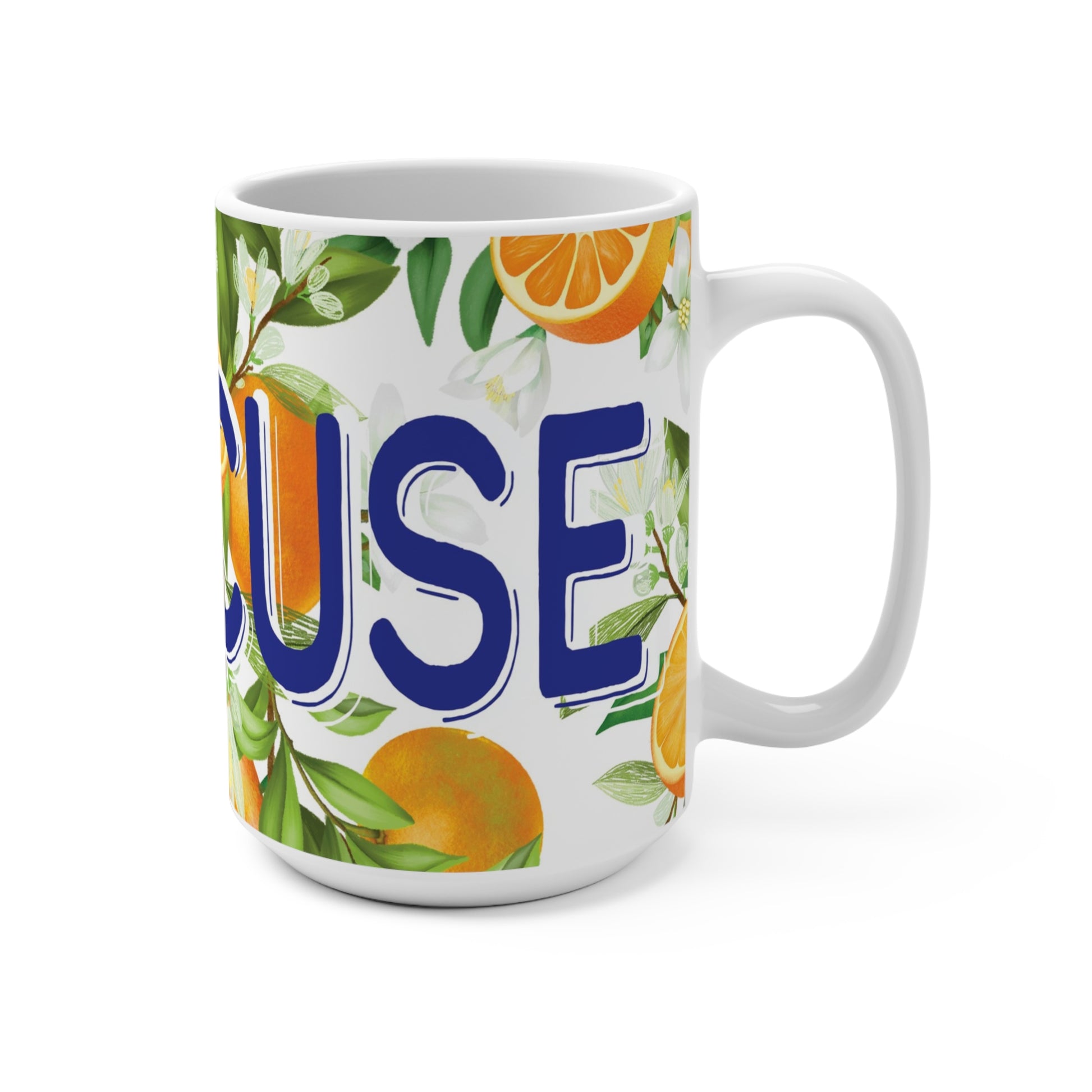 This high-quality 15oz ceramic mug is decorated with orange blossoms and slices, a nod to the Syracuse "Orange". Perfect for enjoying a hot cup of coffee during chilly Syracuse winters, this mug is sure to become a cherished keepsake for locals and visitors alike.